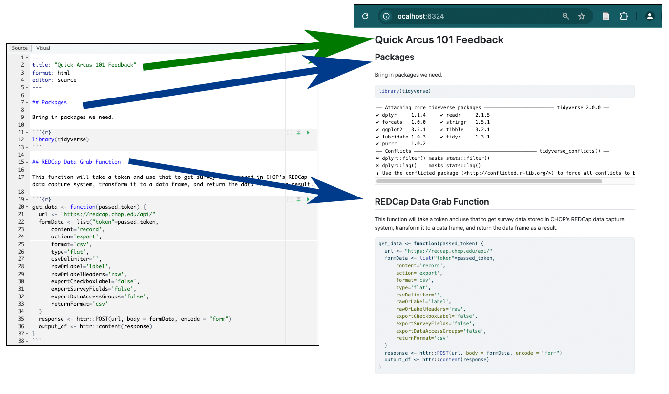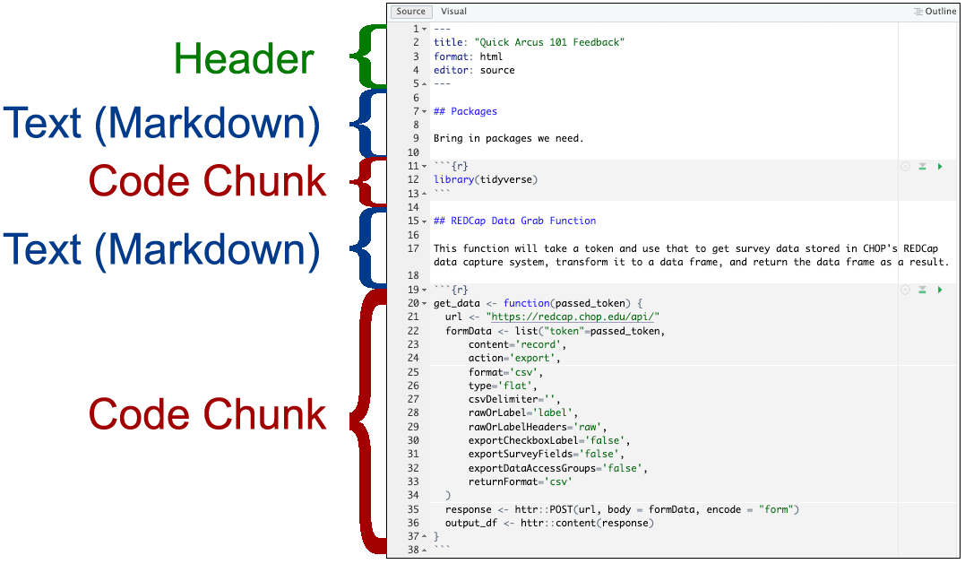 We describe what we do and use headers, bullet points, and other formatting to make it easier for humans to make sense of the code.